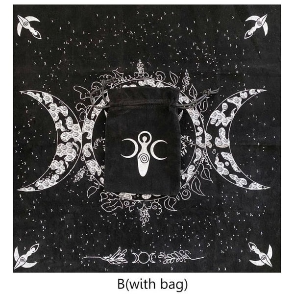 Altar Tarots Cloth Triple Goddess Moon Phases Astrology Tarots Card Divination Special Tablecloth Velvet 19"×19" with Tarots Bag