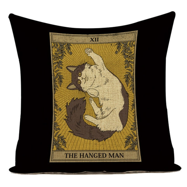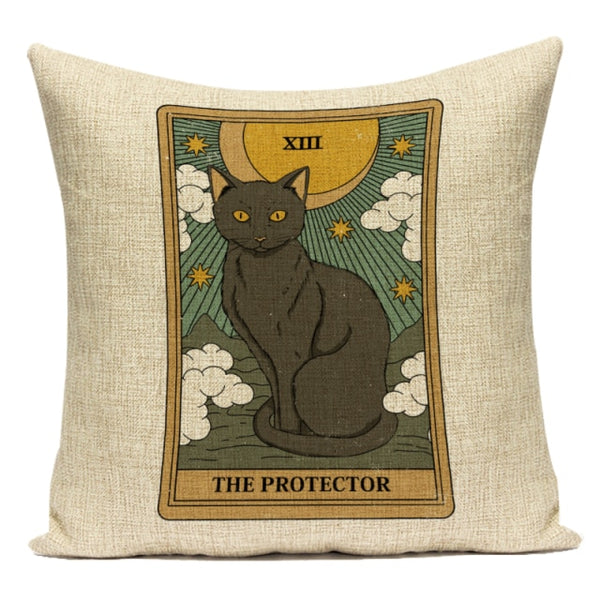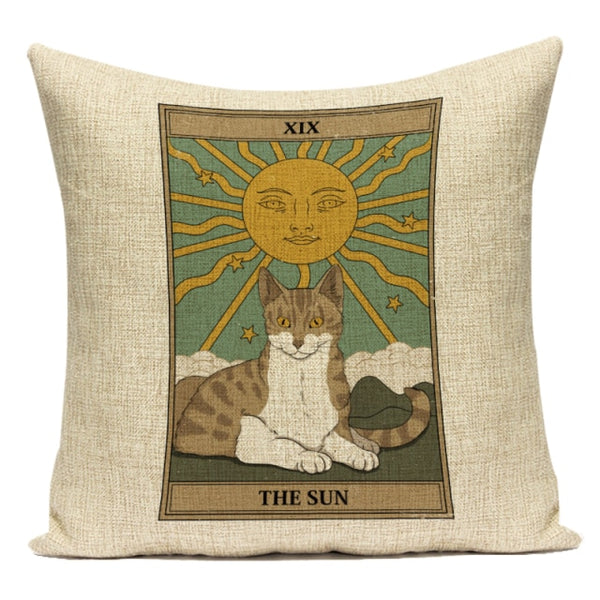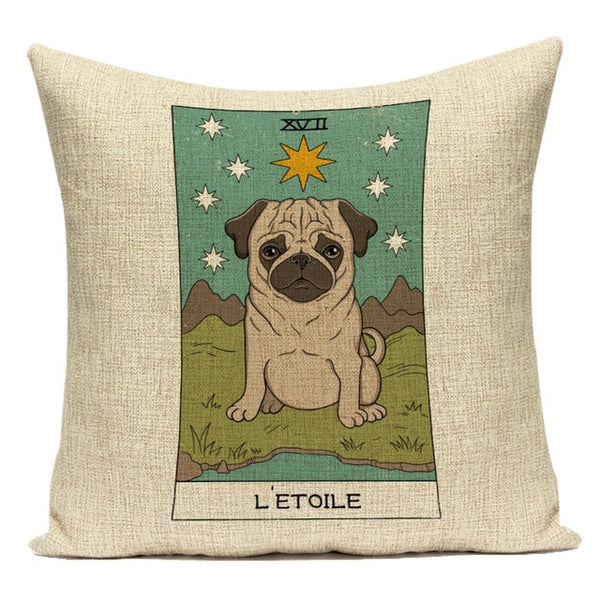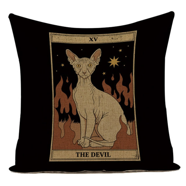 Tarot Card Pattern Cushion Cover Decorative Shar Pei Dog Pillow Case Retro Cat Home Sofa Linen Print Pillows Cover Funda Cojin